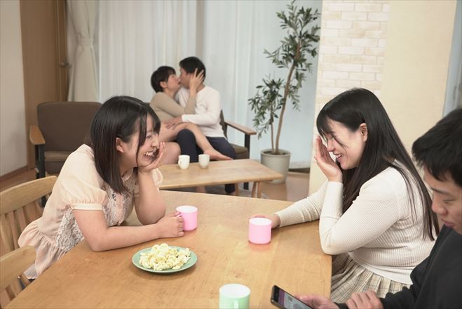 再婚したお互いの親達がラブラブ過ぎて子供達の前でも遠慮なくイチャイチャするので困っている。毎晩夫婦の寝室から聞こえてくる母親の喘ぎ声が声がうるさくて眠れない子供達がこっそり中を覗いてみるとすごく気持ちよさそうに母親がSEXしているのでヤリたい盛りの子供たちもムラムラしてしまい我慢できなくなって・・・